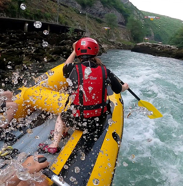 Poslije ručka učesnici oblače rafting opremu i započinju vođeni spust rijekom direktno sa iste lokacije, završavajući turu u našem kampu gdje ih čeka večera.
